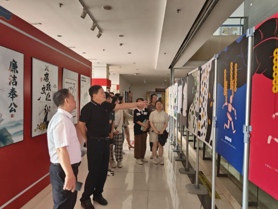 展览以“廉洁自律”为主题,通过漫画、平面公益广告、书法、绘画等多种形式,以极具生命力的艺术语言诠释对于“清廉”的理解。现场广大师生党员认真参观每幅作品,分享感悟。