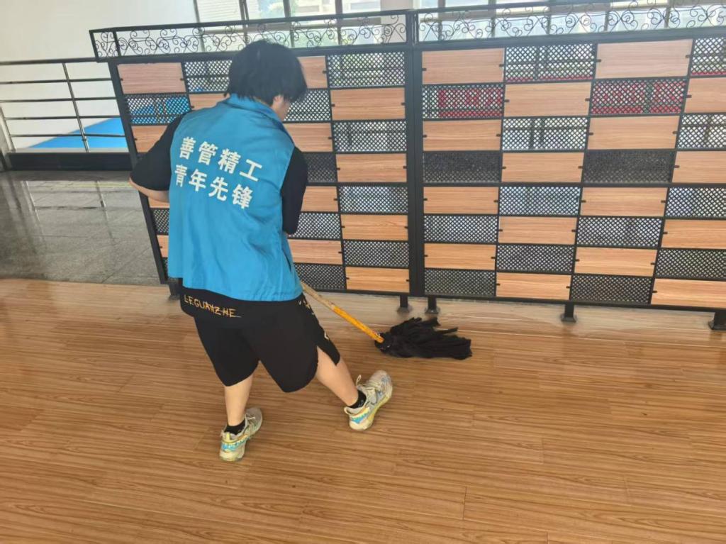 活动当日,志愿者准时集合,有序领取扫帚、抹布、垃圾袋等清洁工具,随后对教学楼指定区域展开系统清扫工作。各小组采用“分区包干”模式,分工明确,重点清理了教室地面、走廊、楼梯等公共区域的纸屑、灰尘等垃圾,并对墙角蛛网、楼梯扶手的污渍等卫生死角进行了彻底清洁。大数据管理与应用244班王泽表示:“这次活动让我深刻体会到劳动的价值,通过亲身参与校园环境维护,我们更加懂得珍惜劳动成果。”