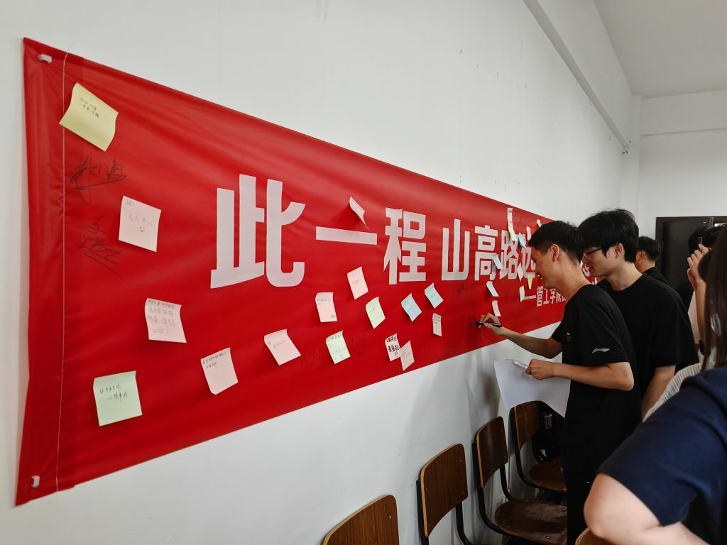 在毕业生文明离校动员会上,任静感谢了全体同学在大学四年中,对学校、学院各项工作的配合,基本实现了个人成长与学院发展同频共振;肯定了全体班委,特别是学生骨干,四年来在各项工作中的辛苦付出,同时也进一步鼓励全体毕业生,要站好毕业前的“最后一班岗”,“文明离校”不仅是简单的行为规范,还是同学们在校园最后一段征程中的试金石,学生骨干和毕业生党员应积极发挥先锋模范作用,在离校手续办理、宿舍整理、同学互助等方面为集体、为身边的同学做好服务。在《毕业生文明离校承诺书》签署环节,毕业班班长团支书依次郑重在承诺书上签下姓名,他们表示,这份承诺是一份誓言,更是一份责任,他们会以实际行动践行承诺,充分发挥学生骨干的先锋模范作用,为大学生活画上一个圆满的句号。在感恩寄语环节,毕业生代表在明信片上书写对母校的感恩寄语,或是对学弟学妹的鼓励,纸短情长,一句句真挚话语展现着青年党员的赤子情怀。