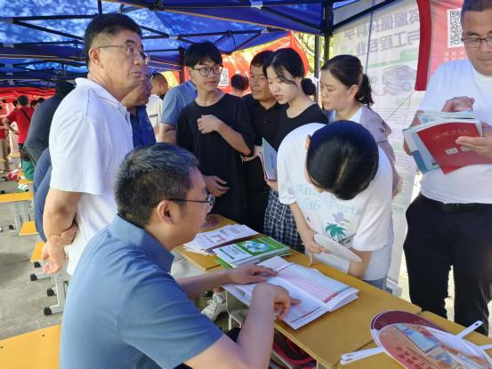 校史校情、学科建设、人才培养、就业去向、校园活动等内容,招生现场氛围热烈。同时学院通过QQ群、微信等社交媒体平台,为考生和家长提供实时咨询解答等个性化服务,为考生专业选择及职业生涯规划提供了更清晰的认识。