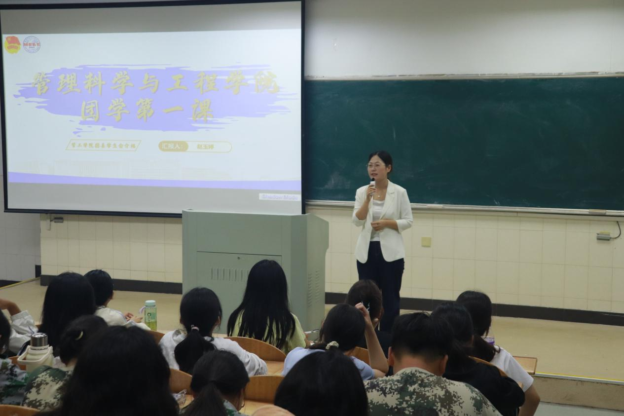在阶教103举办“团学第一课”活动。本次活动由学院团委书记赵玉婷主持,全体2025级新生参加。