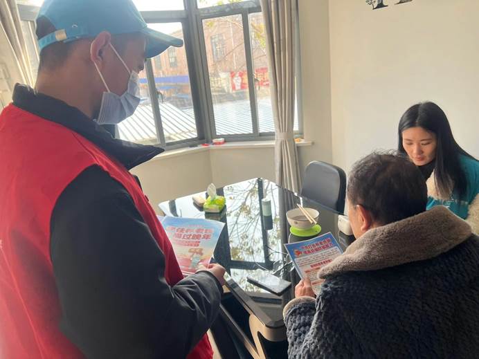 青年志愿者协会寒假实践队在马鞍山市江东街道金瑞社区、乔山社区与社区工作者一同拜访独居老人与残障人士,帮助他们清扫房屋,同时在小区内进行防范网络电信诈骗安全知识宣传。