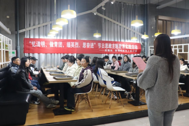 活动中,信息管理与信息系统学生党支部周静宇做《缅怀英烈过清明、不忘初心思奋进》的主题发言,讲述了家乡一批批为民族复兴英勇献身的先烈事迹,呼吁同学们要珍惜今天的幸福生活,以“绝知此事要躬行”的实干担当继承与发扬先烈们的革命精神。工程造价学生党支部张池从节日源起、文化习俗、故事传说等方面讲述了清明的知识。