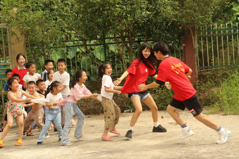蹲下来,与孩子们交朋友,为他们讲述袁隆平爷爷“禾下乘凉梦的故事”,在他们心中种下一粒面对困难时坚守梦想、勇往直前的种子;抱一抱,与孩子们心贴心聊聊天,为孩子做心理健康知识传授,教会孩子们学会关注自身心理需求,拥有健康的身心。实践队员们给毛尖山乡及周边30余名农村留守儿童带去关怀,提供了心理疏导、个人兴趣发展、学习方法指导等服务,引导了儿童们树立远大理想与目标,帮助他们塑造积极阳光、健康向上的心态。