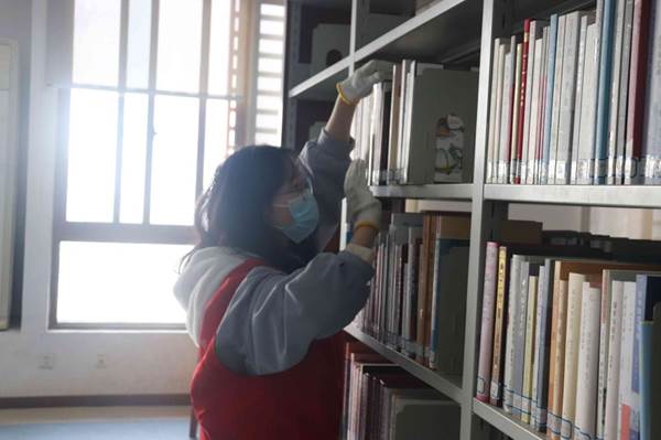 伴随着早晨的阳光,志愿者于图书馆门口集合,细心耐心做好整理工作。入馆后,图书馆负责人尹老师对志愿者进行指导与任务安排,志愿者共分为两组进行活动,一组负责清洁图书馆书架,擦拭落灰,给书籍更好的存放环境;另一组负责整理图书,使图书的摆放更加整齐有致,易于找寻。在志愿者的互相配合与共同努力下,任务圆满完成。