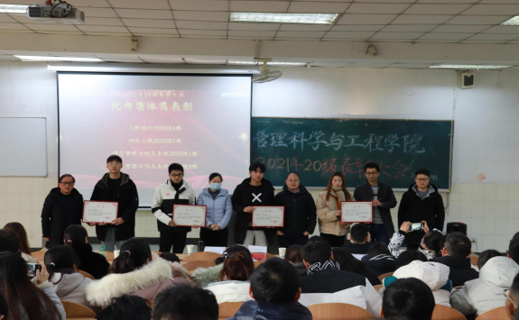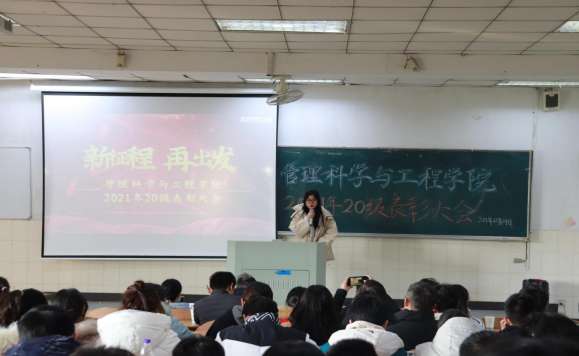 为进一步锻炼学生自我管理、自我教育、自我服务能力,着力增强学生的身份认同感、荣誉感,搭建展示风采、分享体会、碰撞思想、加深师生间相互了解的平台,12月29日下午,管工学院在阶教101举办了20级学生表彰大会暨期末年级会,选树典型、激励表彰2020-2021学年以来工作认真负责、学习成绩优异、综合素质突出、模范带头示范作用强的学生。管工学院20级各班班主任、辅导员、全体20级学生参加大会。
