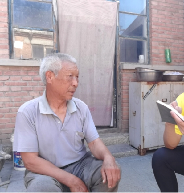 图为实践队员在采访老党员张明生。