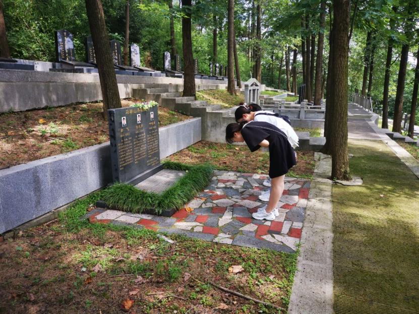 图为实践队在烈士墓前鞠躬。