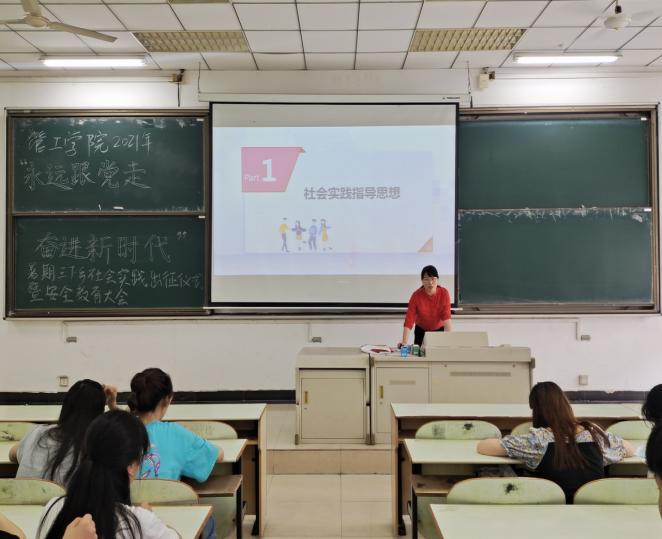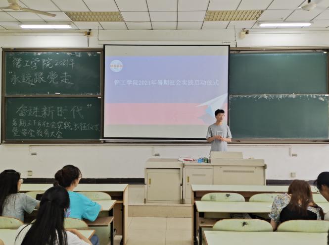 7月9日下午,管工学院2021年暑期社会实践活动启动仪式在教三南201举行,院党委副书记王功成、院团委书记万媛媛老师出席,学院2021年暑期社会实践队员到场参加。