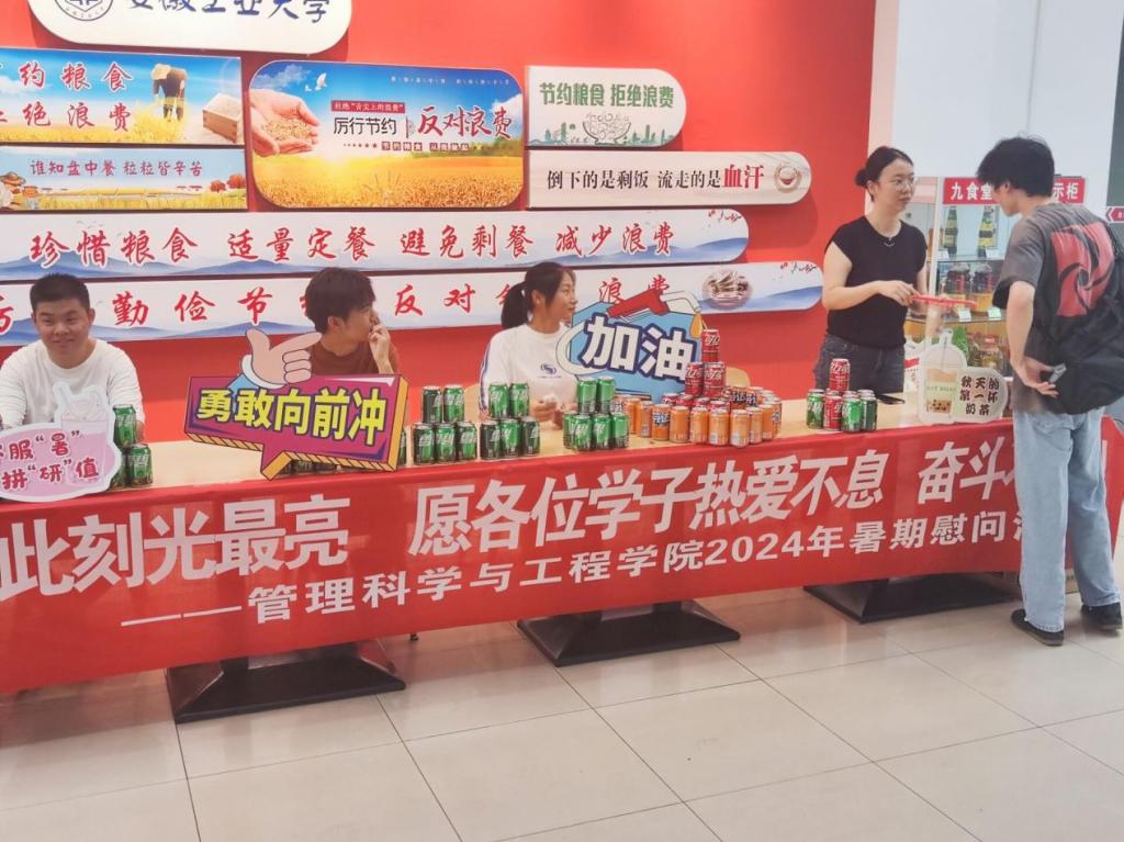 在炎炎夏日,许多学生选择留校继续学习、参与科研项目或备战考试。为了确保这些学生在酷暑中能够保持良好的学习和生活状态,学院精心准备了慰问活动。赵颖与学生们亲切交谈,了解他们的学习和生活情况,鼓励他们克服困难,保持积极向上的心态。辅导员老师为每位留校学生发放了解暑饮品,为他们带来了清凉和舒适。这些小小的关怀举动,不仅缓解了学生们在高温环境下的不适,更让他们感受到了学院大家庭的温暖。