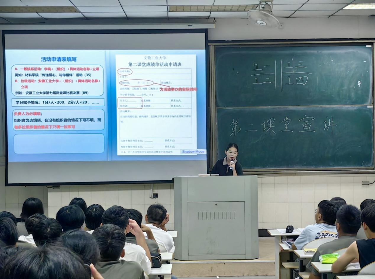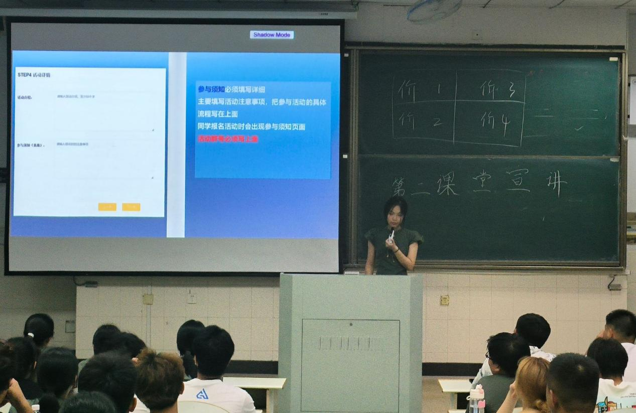 团委学生会于9月14日在阶教204、205、301开展“多彩第二课堂,成就青春梦想”第二课堂宣讲活动。此次活动由校第二课堂数据部部长王杰民、管工学院第二课堂部长黄嘉玥、管工学院第二课堂谢明辉宣讲。