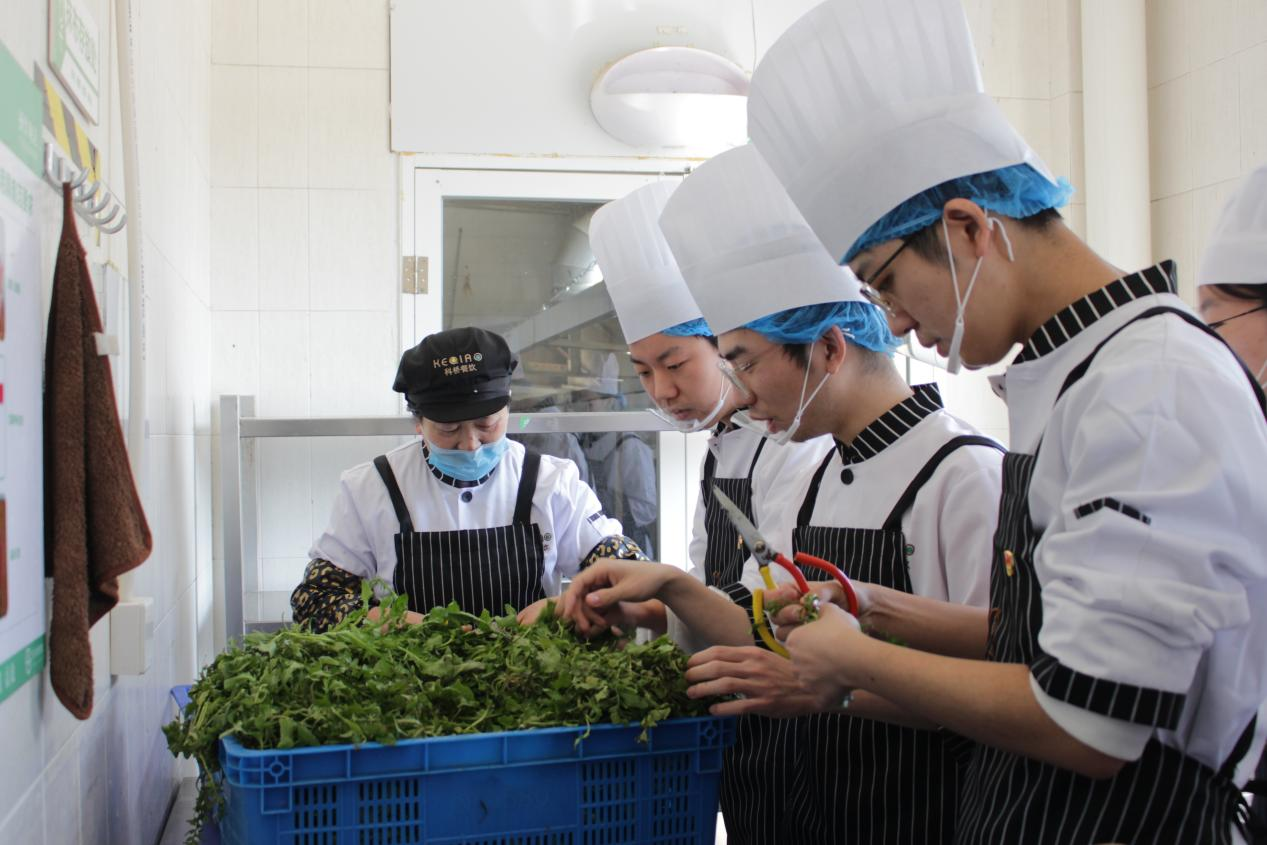 活动采取沉浸式劳动教育模式,通过“宣传•引导•力行”凝聚青年学子传承红色基因,培育勤俭美德。在“光盘行动护卫者”环节,志愿者通过巡回讲解与文明劝导,向用餐师生传播节约理念,并为践行“光盘行动”的师生颁发奖励餐券,当日累计发放500张。“食堂卫生守护者”行动中,志愿者协助工作人员完成餐具回收、桌面清洁与垃圾分类工作,维护了午间用餐高峰时段的食堂环境。最具特色的“红色饮食体验”环节,学生志愿者在食堂师傅指导下参与野菜分拣、食材清洗、红米蒸煮等工序,合作烹制出“清炒马兰头”“荠菜炒蛋”两道“雷锋菜”,以及“红米饭”“南瓜汤”“荞麦馒头”“玉米窝头”四道“忆苦思甜饭”。