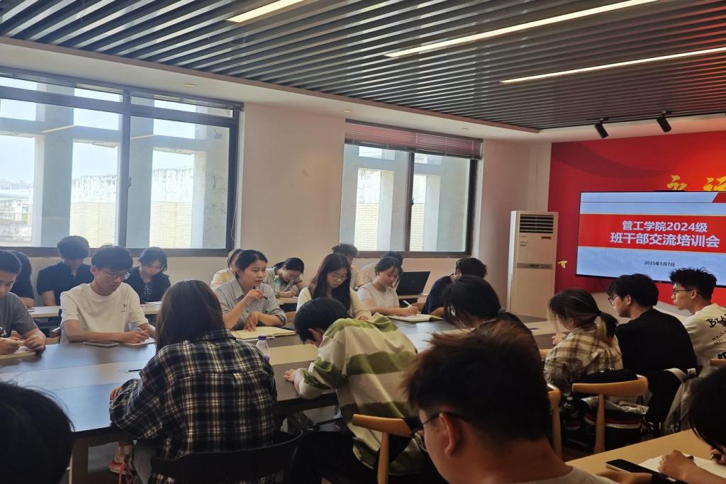 于汇文楼A502召开2024级“从新出发,赋能成长”班级学生骨干培训会,会议由2024级辅导员李军慧、孙如梦主持,2024级班级学生骨干参与。