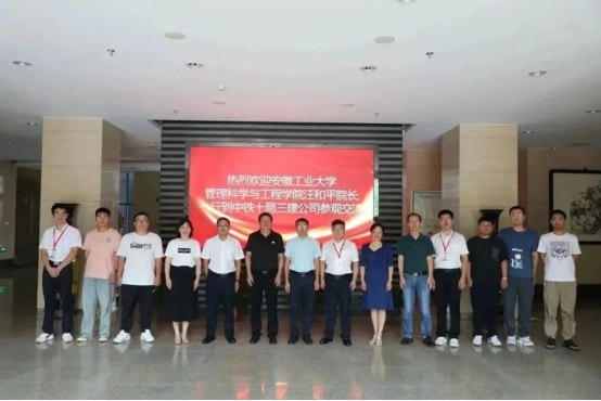 8月17日,管工学院党委副书记、院长汪和平率队赴合肥市中铁十局第三建设工程有限公司开展访企拓岗专项交流活动。中铁十局三建公司党委副书记、纪委书记董剑平,人力资源管理部部长张滔等热情接待了汪和平一行。学院领导班子成员、系主任、教师代表参加了本次活动。