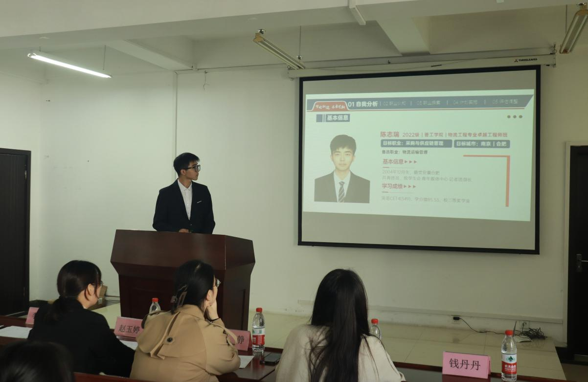 于汇文楼A308举办第十八届大学生职业规划大赛院级选拔赛。院团委书记赵玉婷、辅导员任静、焦朋庆、孙如梦担任评委,经各年级推选共有14名选手参赛。