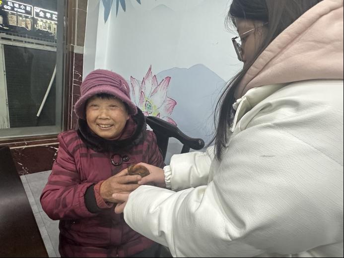 图为实践队员为老人递上热茶。通讯员 姚敏敏 摄