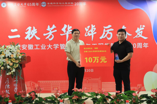 大会在庄严的国歌声中拉开序幕。院长汪和平致欢迎辞,向出席会议的嘉宾表示热烈欢迎,并从学科建设、科研成果、人才培养等方面介绍了学院的发展和建设成果,他表示一批批管工人守望相助、积极创新,铸就了管工学院今日的荣光,学院的发展离不开追梦的老师、追梦的学子以及追梦的校友们。在新起点新征程上,学院将与全体校友、嘉宾团结携手、群策群力,以更加昂扬的精神风貌共筑母校新辉煌。校友代表1991届工商管理专业毕业生安徽华智企业管理顾问有限公司执行董事、管工学院合肥校友会会长李斌回忆了在母校的求学经历和成长感悟。在校生代表工业工程213班李枫代表在校生向学院送上生日的祝福。学院党委书记王军作总结发言,他表示校友是学院宝贵的财富,二十年来学院的发展壮大、师资力量和办学条件快速发展,是管工人用沸腾的热血浇筑的。希望各位校友常回来看看,与学院携手共进,积极为学院的发展贡献智慧与力量。会上,汪和平院长、王军书记分别向安徽夺冠体育科技有限公司董事长2013届校友陈志栋、江苏艺特新能源科技有限公司董事长2006届校友孙照生等颁发了捐赠“特别贡献奖”。据悉,陈志栋、孙照生两位校友累计向学校、学院捐赠75万元。