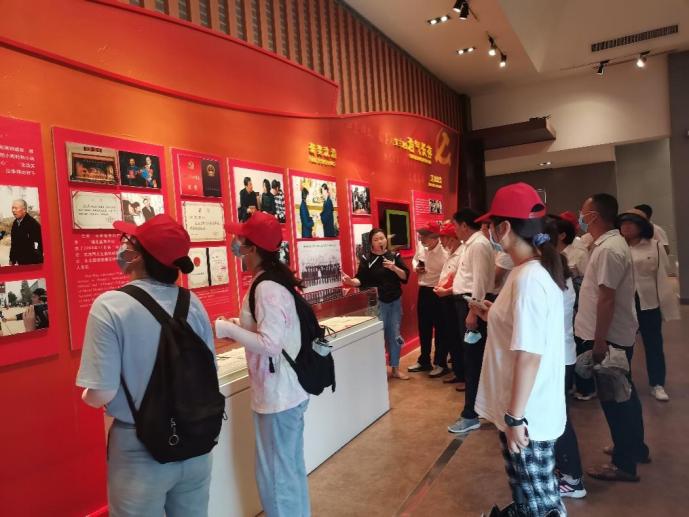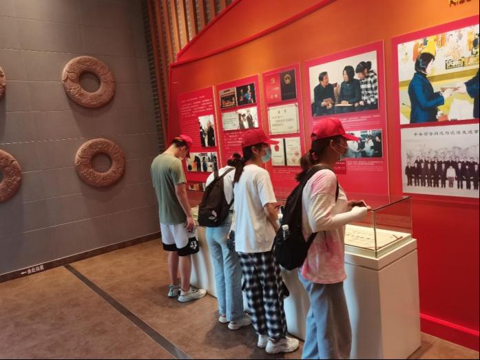 图为实践队员在通过展板了解实行大包干政策之后给小岗村发展所带来的巨大变化。