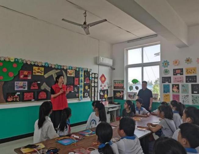 图为实践队员在少年宫给青少年进行党史宣讲。