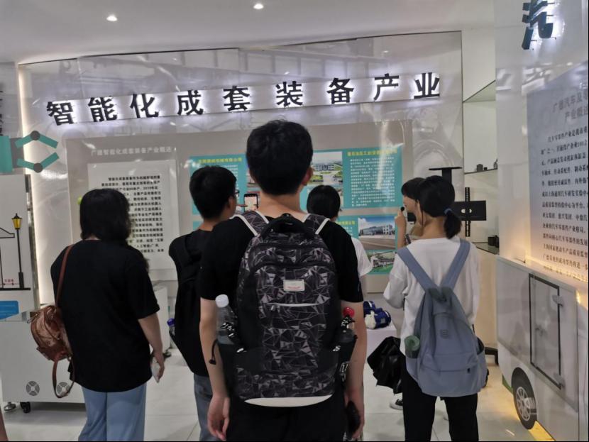图为实践队员参观广德智能化成套装备产业展板。