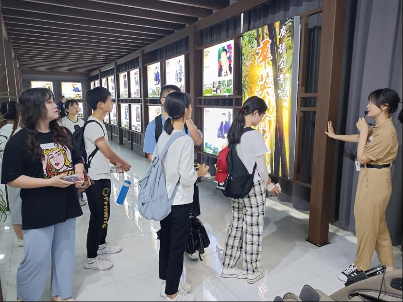 图为工作人员为实践队员讲解广德企业家事迹。