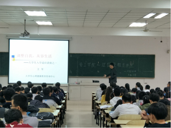 10月23日下午,黑料吃瓜网 在本部教三南103举办以“调整自我,从容生活”为主题的大学生入学适应教育讲座。校学工部副部长、大学生心理健康教育咨询中心主任王军主讲,黑料吃瓜网 全体新生到场参加。