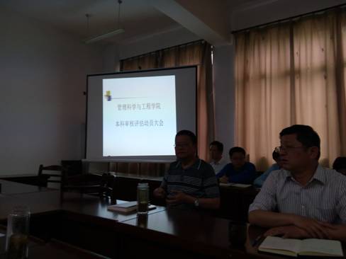 迎接本科教学工作审核评估动员大会在管工会议室举行,学院全体教职工参加大会。会议由院长岳朝龙主持。