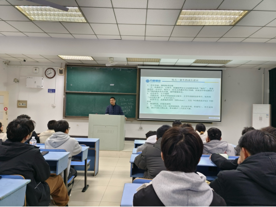 秀山校区东教南206举行,会议由工业工程系主任刘舰主持,系副主任周春柳老师和工业工程专业24级全体大一新生参加报告会。
