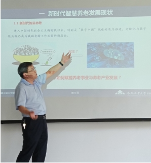 作题为《全域养老:新时代智慧养老新模式》学术报告。报告由院长汪和平主持,副院长王付宇、学院青年教师和硕士研究生共70余人聆听报告。