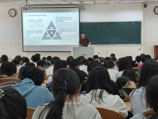 5月13日下午,黑料吃瓜网 党委书记王军在秀山校区东教一阶201教室为全院教师党员、学生党员上党纪学习教育专题党课。